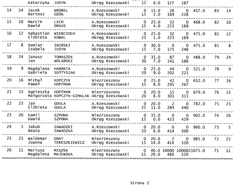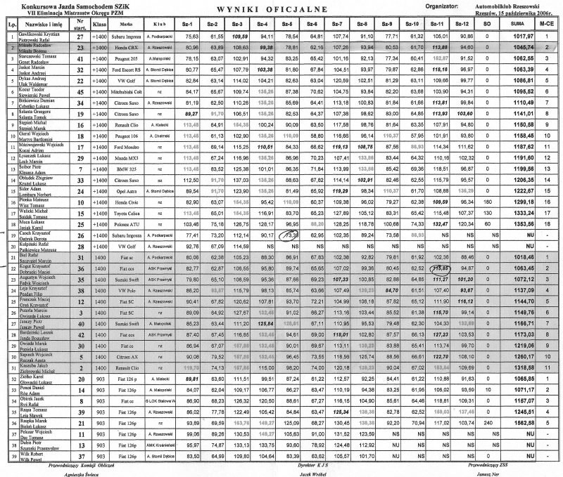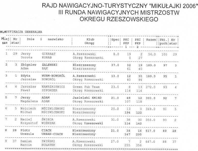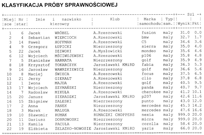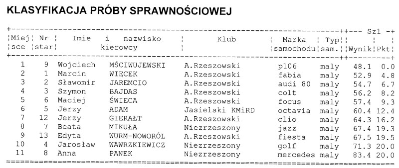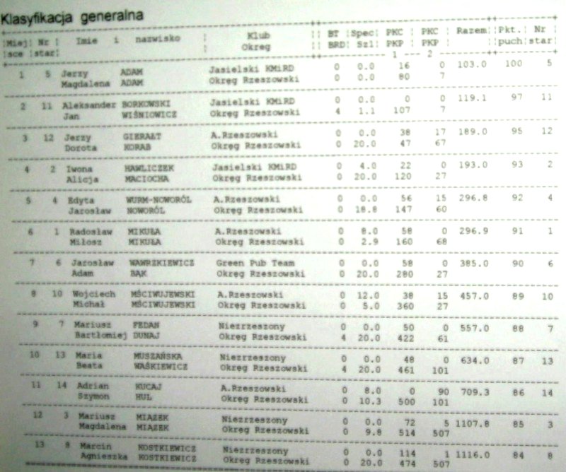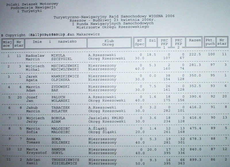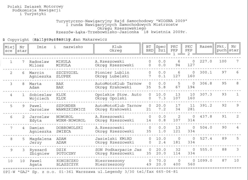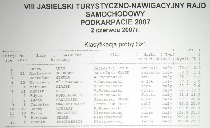 Wyniki rajdu.