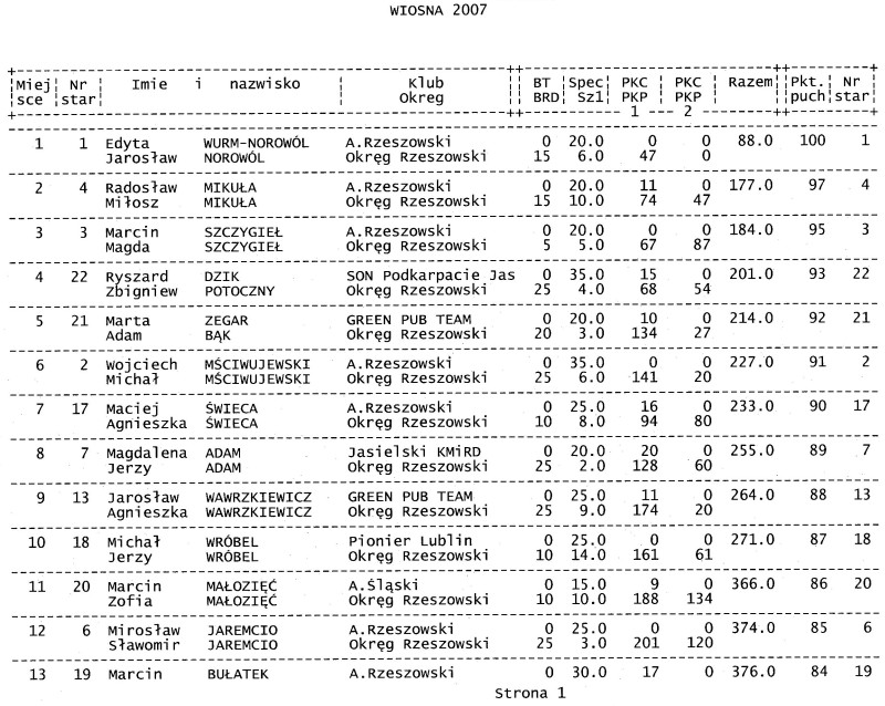 RAJD WIOSNA '2007 - I eliminacja Nawigacyjnych Mistrzostw Okręgu Rzeszowskiego