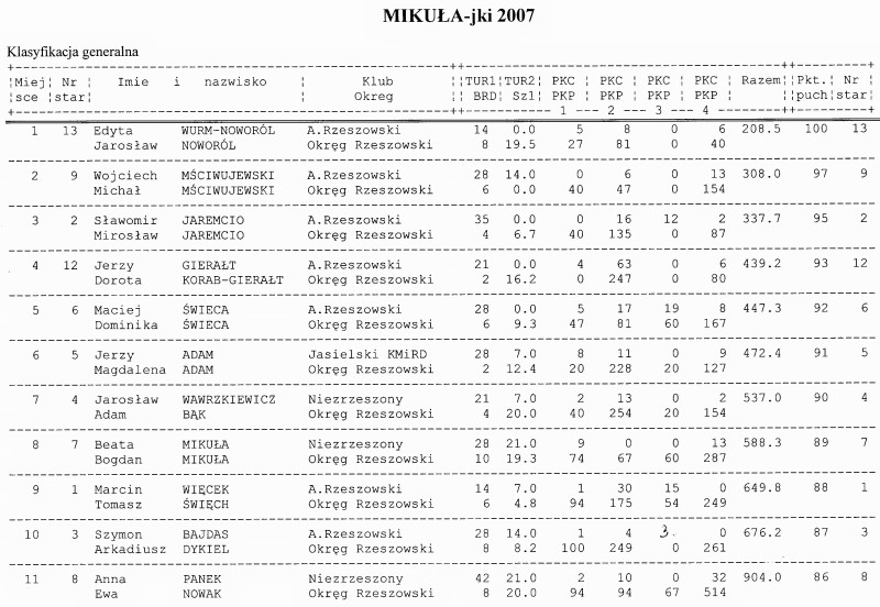 Wyniki rajdu MIKUŁAjki '2008.