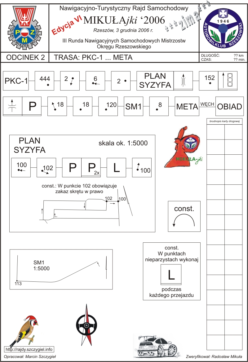 Itinerery odcinków I i II zawierające prawidłowe wzory przejazdów: