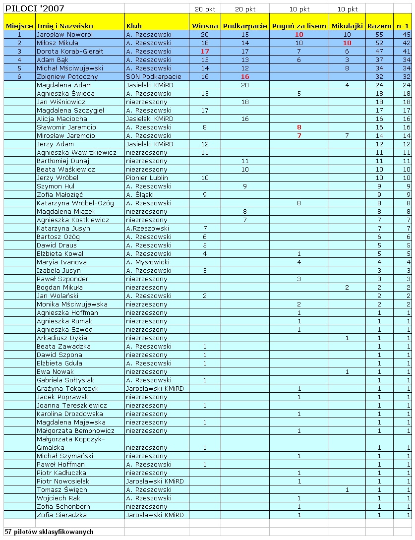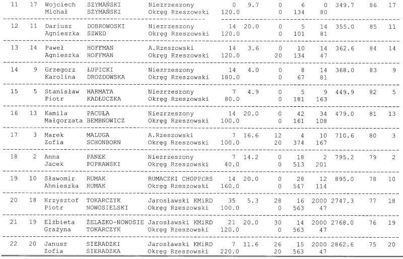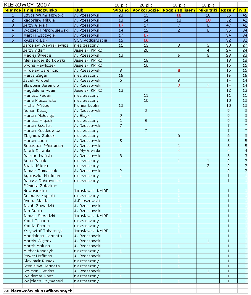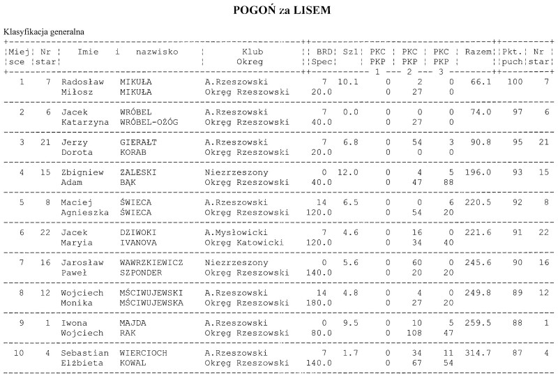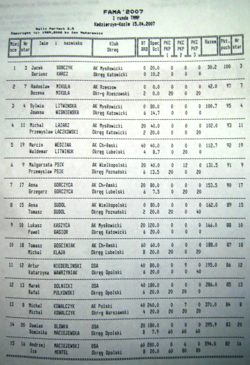 Wyniki rajdu.