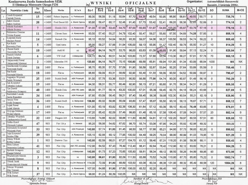 Wyniki oficjalne imprezy.